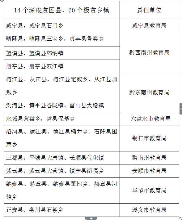 面向全省14个深度贫困县、20个极贫乡招收应(往)届初中毕业生,其中对口帮扶三都县、平塘县大塘镇、长顺县代化镇、从江县秀塘乡、刚边乡。全省14个深度贫困县、20个极贫乡名单见附件1。