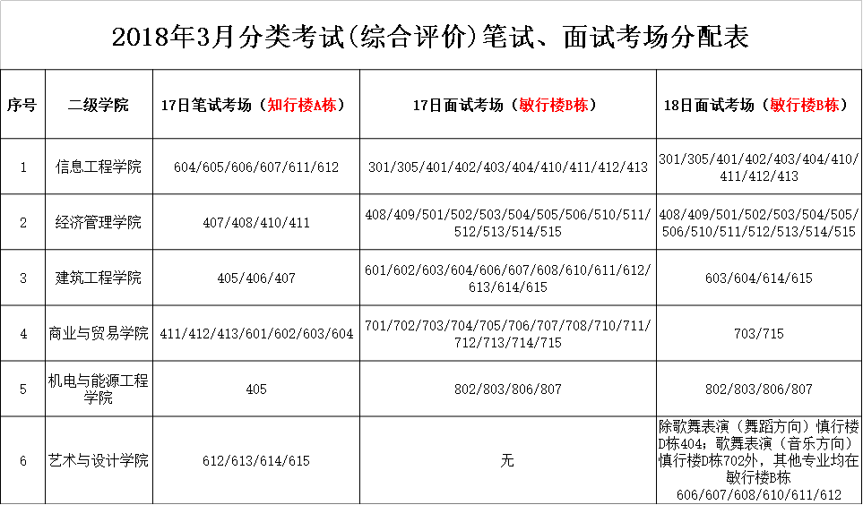 中职考生必须参加3月17日上午9:00——11:00的笔试,考生需于8:30前到达考场,笔试结束后立即到第一志愿专业面试。高中考生不需参加笔试,仅需参加面试,面试从3月17、18日上午9:00开始,各学院根据报考情况安排考生到校面试时间段,并负责通知考生的笔试(中职毕业生)、面试(高中生、中职生)时间。