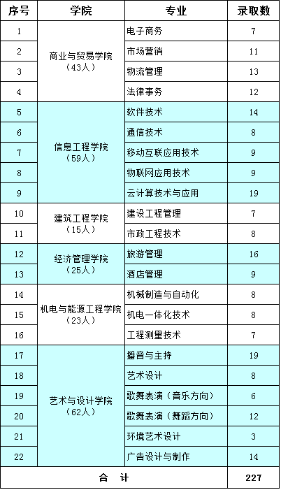 学校2017年“中职推优”录取工作于4月26日启动至今,经过现场阅档、联系考生、录入、调剂、上报审核、分类推优两类重复数据核查等环节,随着省招生考试院最终数据的下发,该项招生录取工作全面完成,22个专业共录取学生227人。各学院各专业录取情况如下: