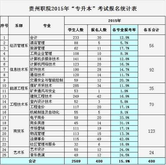 数据显示,我院“专升本”报名学生人数逐年增加,今年达到400人,与去年相比,实际增加210人,增幅达110.5%,占2015届毕业生的15.9%。为了使学生能够顺利报名,我中心在报名期间积极联系省内本科院校,设法为每个专业的学生争取到更多对口专业、计划和院校,确保了学生的有效报考。