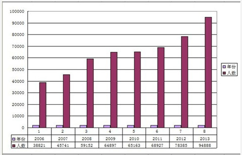 10月25日,2013年秋季在校生、遗留生统计工作顺利完成,根据统计,全省电大(含贵州职院)在校生人数达到94888人,创下我校在校生规模历史新高,与去年同期相比增加16503人,增幅达21.1%。这一统计数据反映我省电大在校生规模继续保持着良好的上升态势,在校生人数从2011年的68927人,到2012年秋季的78385人,直至今年94888人,在三年时间内实现了25000人规模的上升,稳居全省各高校在校生首位。