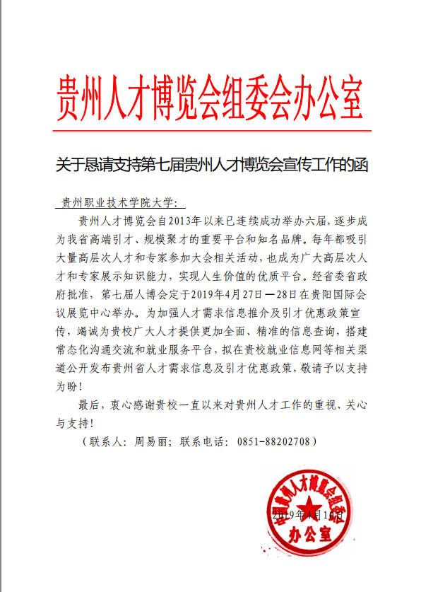 关于贵州开展“第七届中国贵州人才博览会”专项引才活动的邀请函