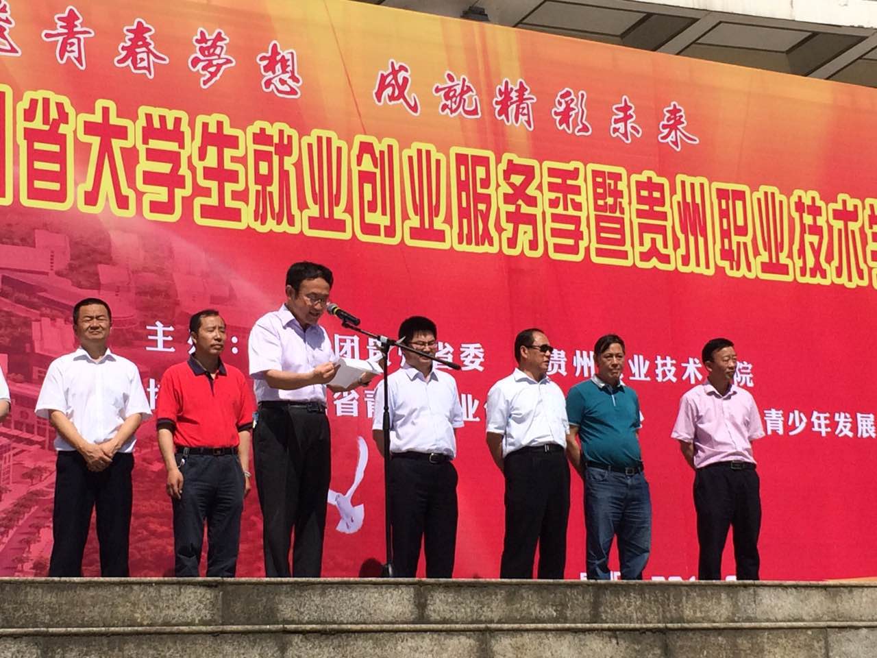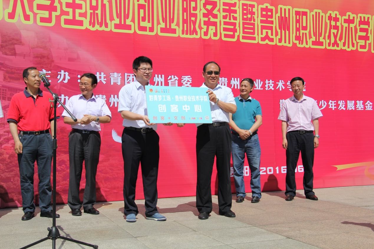团省委领导在招聘会启动仪式上,还为我院授牌“黔青梦工场---贵州职业技术学院创客中心”,后期将在政策、培训、项目资金上全力帮扶我院开展就业创业工作。