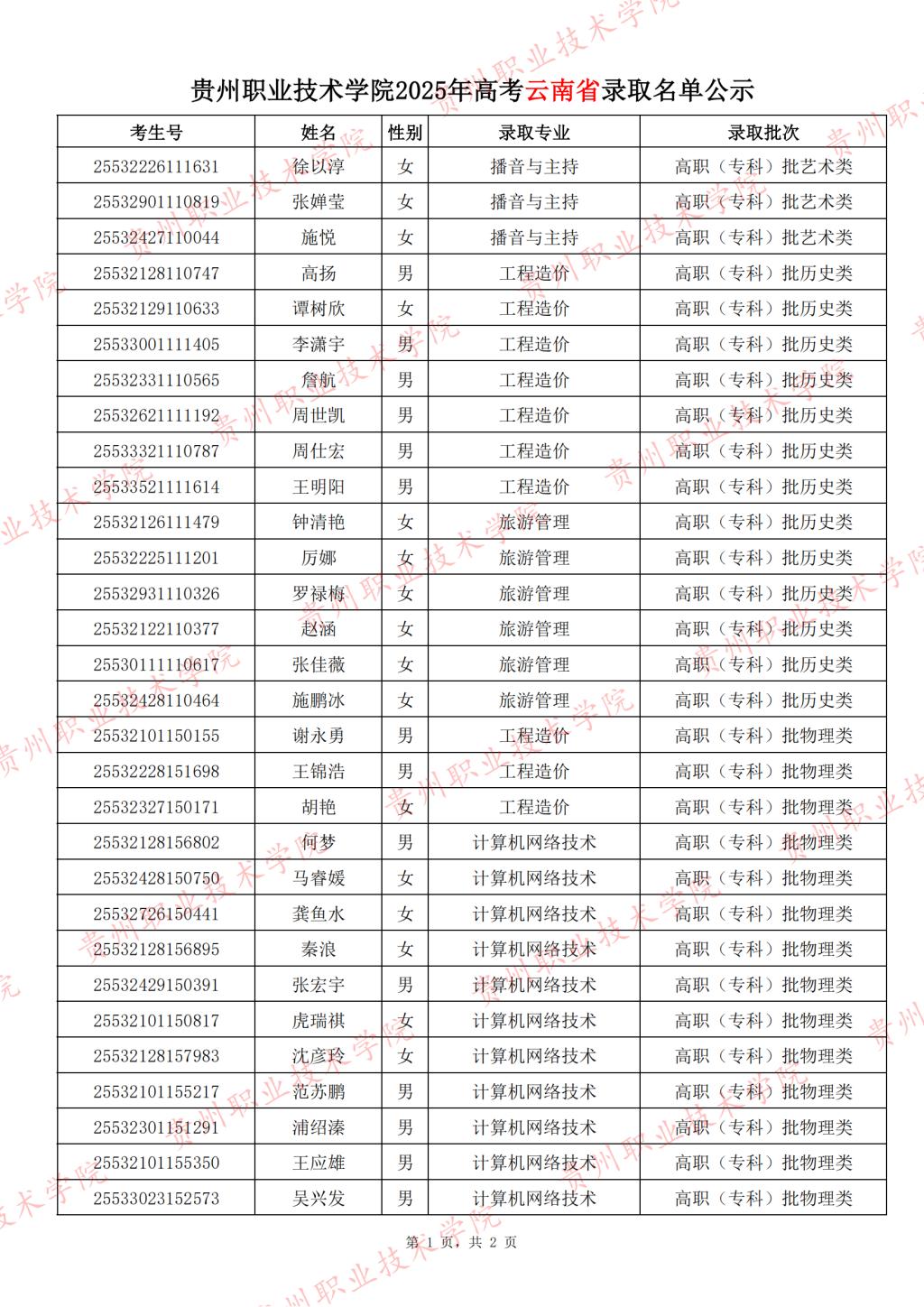 下一篇:贵州职业技术学院2025年高考四川省录取名单公示